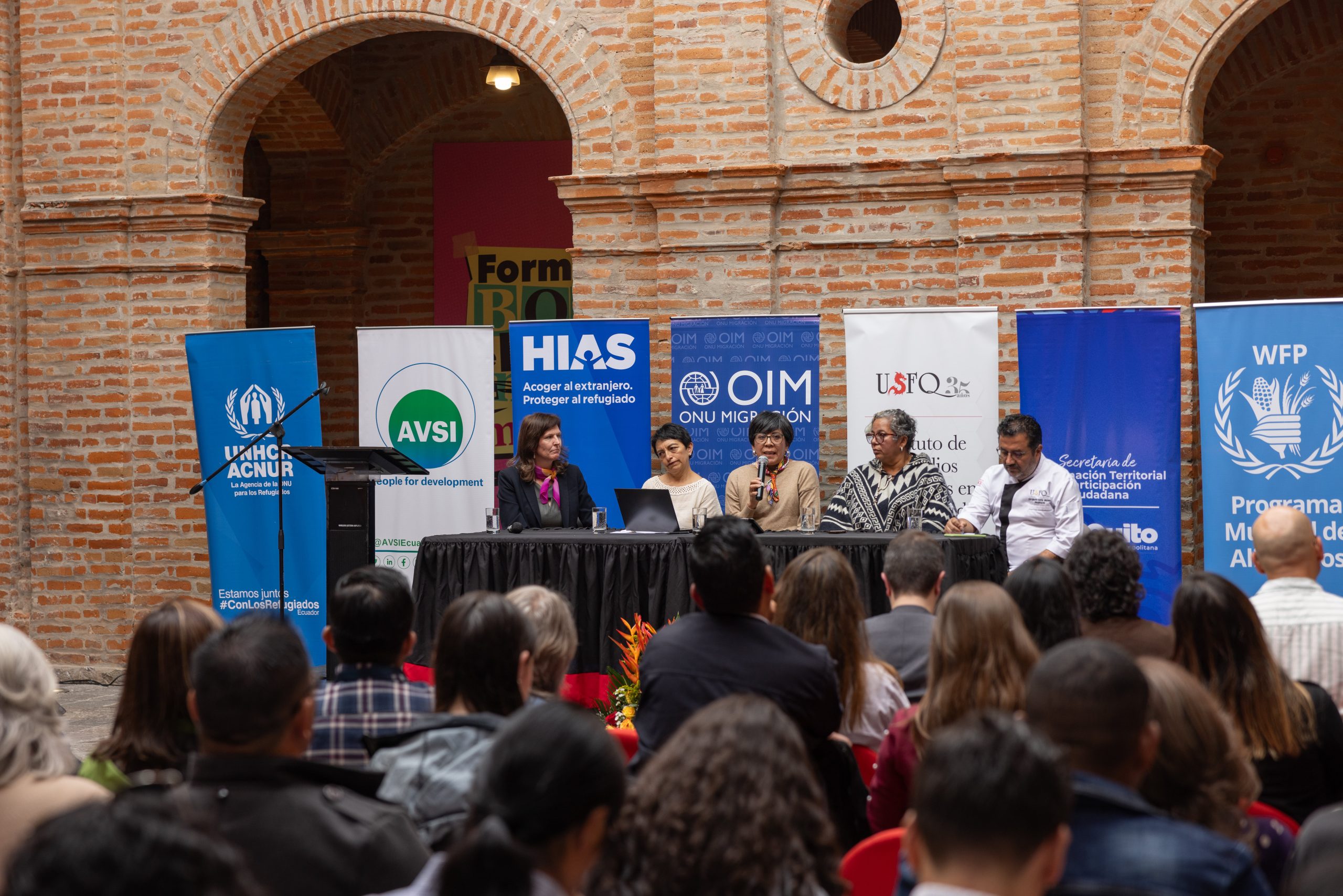 The MiFood Ecuador project team presented the results from the first year of the MiFOOD Quito project and inauguration of the photo exhibition "Migration and Food Insecurity: Resilient Narratives and Post-Pandemic Memory" in the Centre for Contemporary Art in Quito, Ecuador on Friday, February 23rd, 2024. The event included a discussion with stakeholders from the ACNUR, AVSI, HIAS, IOM, and the WFP, concerning the advances, challenges, future prospects for Food Security and Migration and Quito, and concluded with the signing of an inter-institutional agreement between USFQ and the IOM.